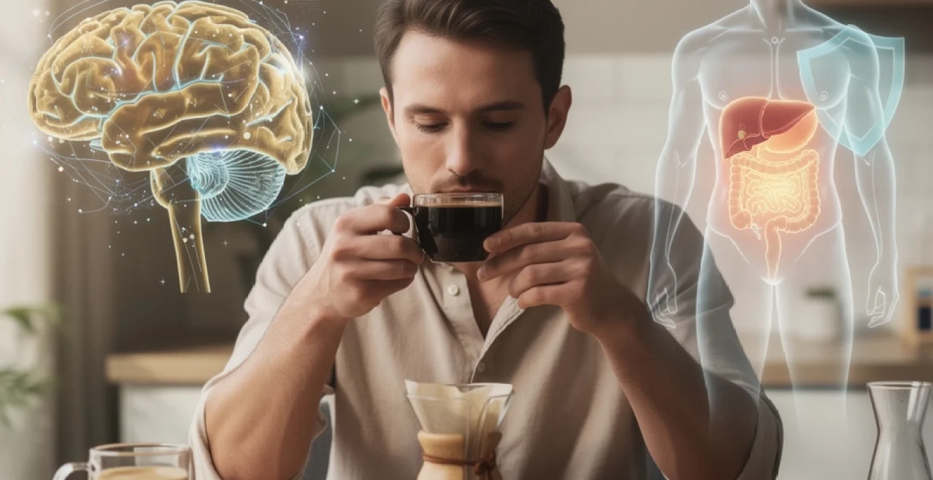 Le foie fait partie des grands bénéficiaires d’une consommation modérée de café. De nombreuses méta-analyses montrent une réduction notable du risque de stéatose hépatique non alcoolique (foie gras), de fibrose, de cirrhose et même de carcinome hépatocellulaire chez les buveurs réguliers. Les mécanismes impliqués sont multiples : amélioration du métabolisme des graisses, réduction de l’inflammation hépatique, modulation du stress oxydatif et effets spécifiques de certains composés comme les diterpènes cafestol et kahweol.